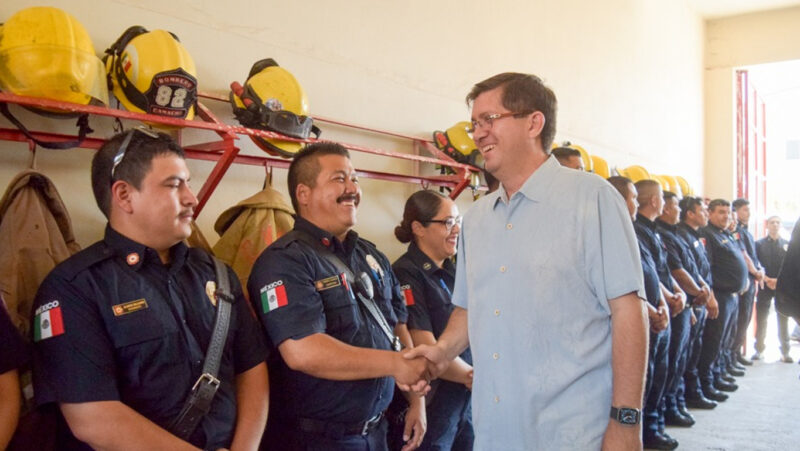 El alcalde Jorge Alberto Elías Retes entregó este lunes 60 nuevos uniformes a elementos del Departamento de Bomberos Navojoa, vestimenta de alta calidad cuya inversión alcanzó 345 mil pesos para beneficio a la imagen e identidad institucional.