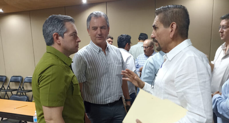 En la gráfica con el Secretario de la SIDUR en el Estado, Omar Francisco del Valle Colosio, y con el titular de la CONAGUA en la entidad, Jesús Antonio Cruz Varela.