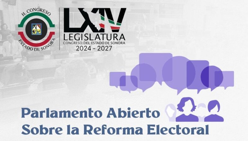 Hermosillo, Sonora; 7 de enero de 2025.- Con el propósito de fomentar la participación ciudadana en torno a la reforma a la Ley de Instituciones y Procedimientos Electorales del Estado, en el marco de la reforma al Poder Judicial local, el Congreso de Sonora reiteró su invitación a las personas interesadas a sumarse a los ejercicios de Parlamento Abierto que se llevarán a cabo este miércoles 8 de enero en Hermosillo, Cajeme y Nogales.