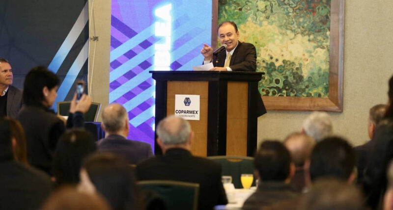 Con el propósito de estrechar vínculos y reafirmar compromisos para promover la inversión en la entidad, el gobernador Alfonso Durazo Montaño participó en la toma de protesta de los nuevos integrantes de la Mesa Directiva de Coparmex Sonora Norte.