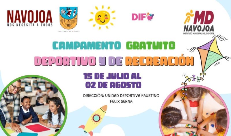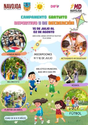 El Instituto Municipal del Deporte te invita a inscribir a tus hijos al Campamento de Verano, que se llevará a cabo del 15 de julio al 02 de agosto, en la unidad deportiva «Faustino Félix Serna».