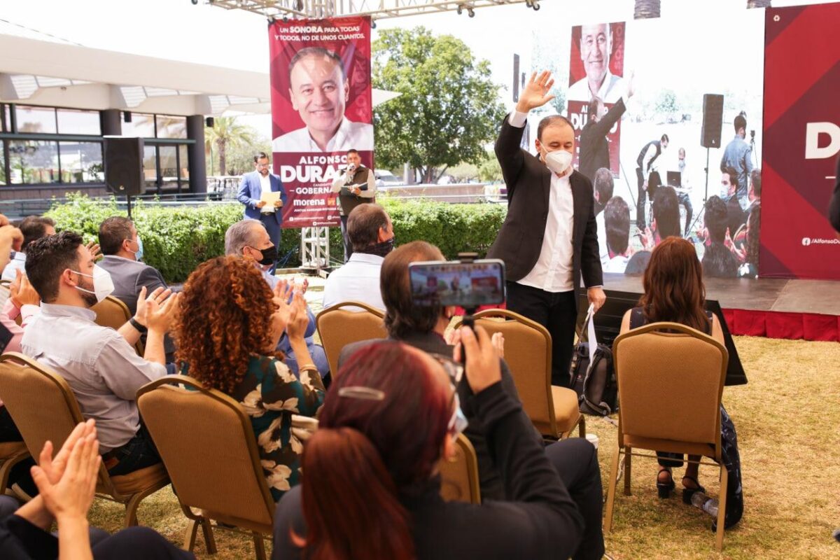Durante una reunión con empresarias y empresarios sonorenses encabezada por María Elena Gallegos, presidenta y CEO de Grupo Collectron, en el Club de Golf Los Lagos, el candidato a gobernador manifestó que los empresarios serán protagonistas fundamentales en la reactivación del crecimiento y en la construcción de una nueva prosperidad que beneficie a todos, especialmente a los olvidados de siempre.
