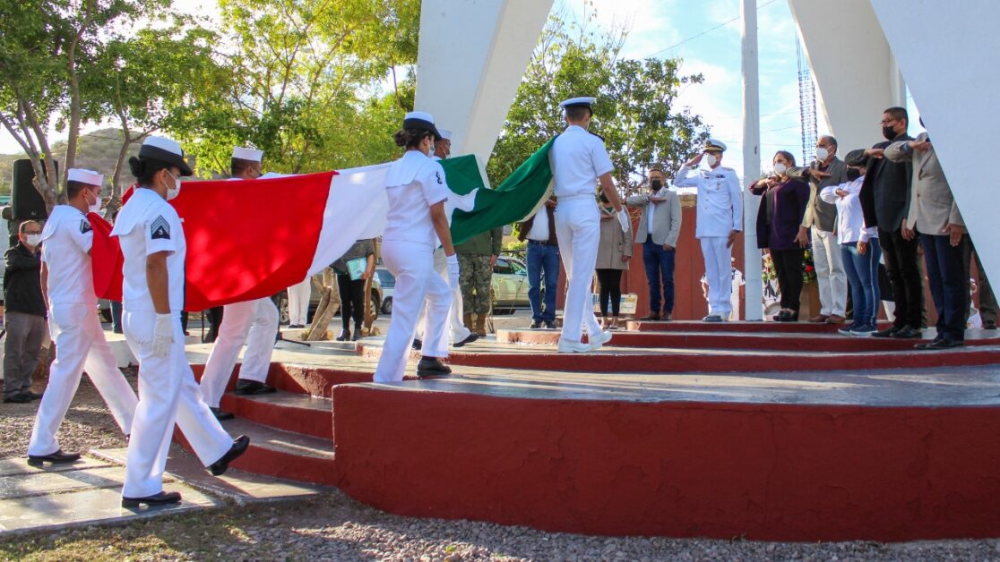 la participación de la escolta y Banda de Guerra de la Cuarta Región Naval para el izado y honores de Bandera Nacional, encabezado por la alcaldesa Karla Córdova González y el Super inspector de la Cuarta Región, Fritz David Peyrot Raab, en representación del Comandante de la Cuarta Región, Raúl Pérez Vázquez.