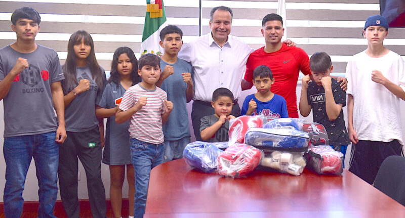 Boxeadoras y boxeadores del gimnasio HT Boxing, de la colonia Benito Juárez, recibieron de manos del Presidente Municipal Antonio Astiazarán Gutiérrez un costal de boxeo, manoplas, guantes, caretas y vendas, junto con un mensaje de agradecimiento por ser un orgullo para Hermosillo.
