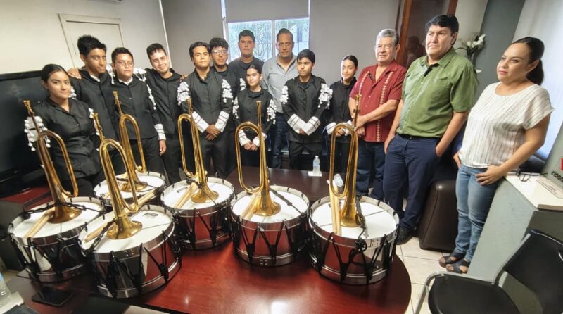 “Para mí es una gran satisfacción el poder entregar esta banda de guerra a los estudiantes de COBACH para que continúen con su formación actual y futura, seguro estoy que ustedes les darán el mejor de los usos”, destacó el diputado.