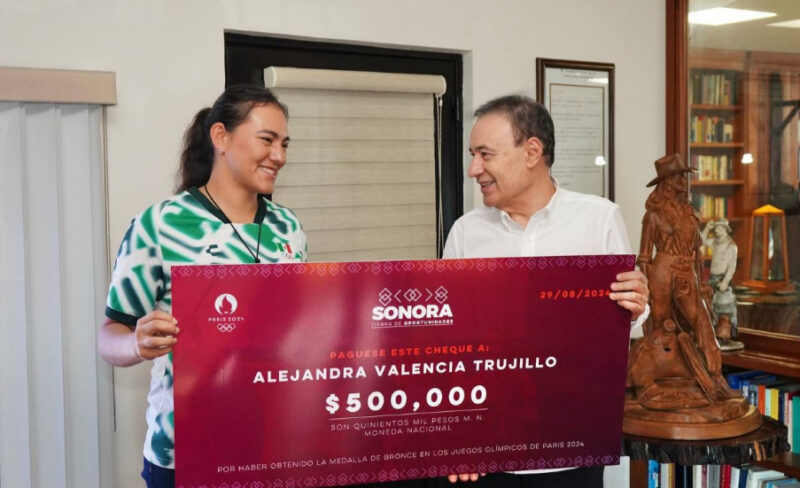 El jefe del Ejecutivo estatal manifestó a la medallista olímpica su reconocimiento y enfatizó que este apoyo de 500 mil pesos servirá para que la atleta pueda continuar con su preparación y seguir poniendo en alto el nombre de Sonora.