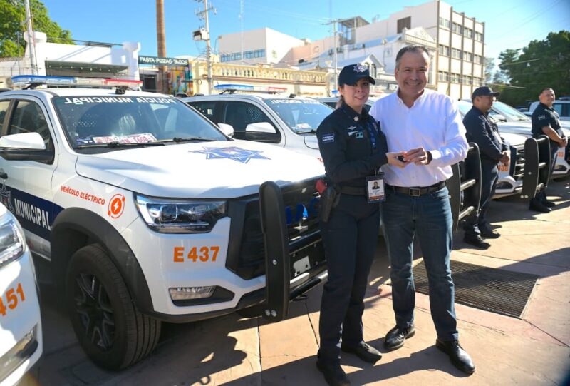 El presidente municipal entregó las llaves de unidades tipo pick ups y sedán totalmente eléctricas que suman una inversión de 54 millones de pesos destinadas a mejorar la capacidad operativa de elementos que diariamente arriesgan sus vidas para proteger la tranquilidad de familias.