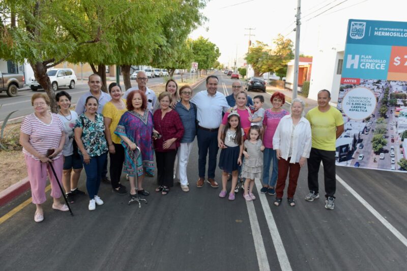 Hermosillo, Sonora.- El Presidente Municipal, Antonio Astiazarán entregó la obra de recarpeteo en la calle 14 de Abril en la colonia Valle Hermoso que también contempla sustitución de tuberías, guarniciones y ciclovía con una inversión de 7.9 millones de pesos.