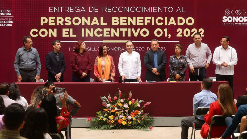 En el marco de la entrega de reconocimiento a personal beneficiado con el incentivo O1-2022, que otorga la Secretaría de Educación Pública (SEP), el mandatario sonorense, acompañado por la titular de la SEP, Leticia Ramírez Amaya, calificó este incentivo como histórico, ya que representa un incremento en los ingresos de las y los maestros con base a su desempeño en las aulas.