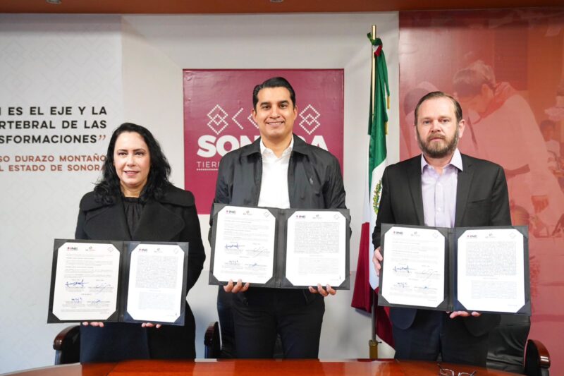 El titular de la Secretaría de Educación y Cultura (SEC) firmó un convenio de colaboración con Verónica Sandoval Castañeda, vocal ejecutiva de la Junta Local Ejecutiva del Instituto Nacional Electoral (INE) en el estado y con Nery Ruiz Arvizu, consejero presidente del Instituto Estatal Electoral y de Participación Ciudadana (IEEyPC) para garantizar la organización de dicho proceso.