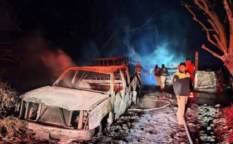 Tetepango, Hgo., Una persona muerta y ocho heridas de gravedad, entre ellas un menor, fue el saldo de una explosión e incendio de contenedores llenos de gasolina proveniente de una toma clandestina, conectada a una perforación en un ducto de Petróleos Mexicanos (Pemex), ayer en la madrugada en el municipio de Tetepango. Los tanques estaban sobre cuatro camionetas pick up que quedaron calcinadas.