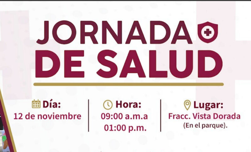 Guaymas, Sonora.- Con servicios médicos gratuitos, este martes 12 habrá Jornada de Salud en la colonia Vista Dorada (parque), convocada por el Ayuntamiento de Guaymas, Desarrollo Social y Salud Pública Municipal, esto para trabajar junto a las familias en la prevención de enfermedades, señaló Austria Castro Gracia.