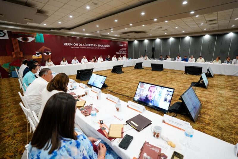 San Carlos, Guaymas; Sonora; 18 de mayo de 2023.- Con el objetivo de establecer acuerdos formales que permitan avanzar en la transformación del sistema educativo nacional, se realizó en Sonora una reunión de líderes en educación encabezada por Leticia Ramírez Amaya, secretaria de Educación Pública del Gobierno de México.