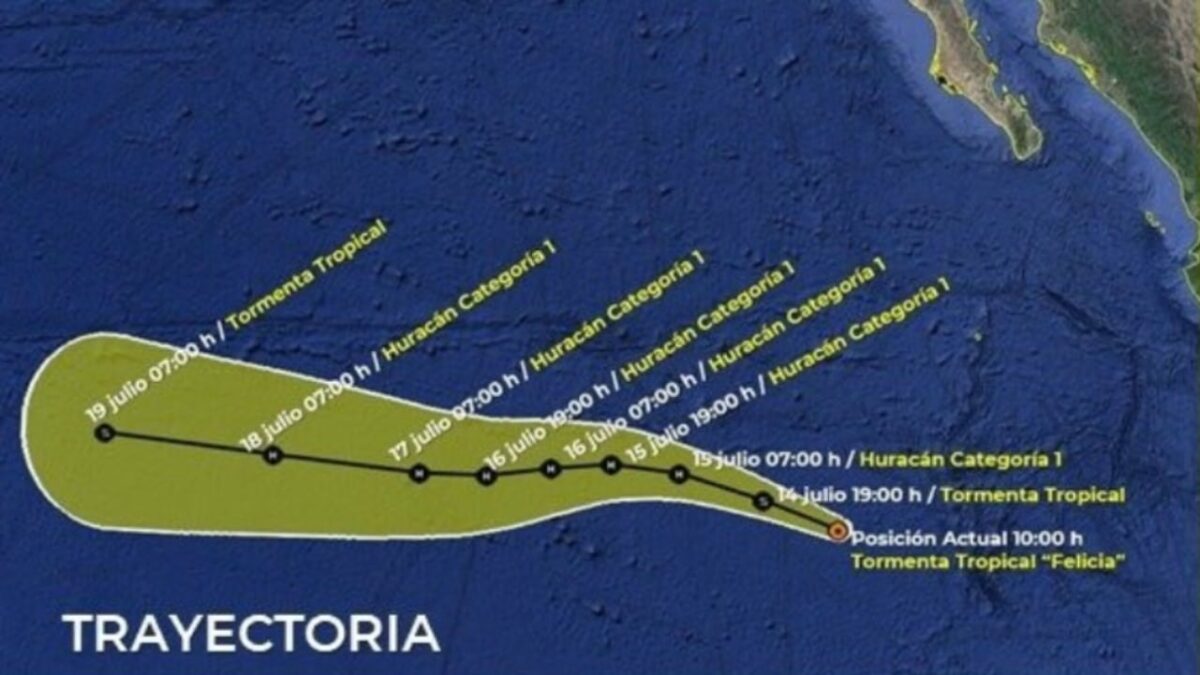 El ciclón Felicia tomó fuerza y se convirtió en huracán categoría 1 en el Océano Pacífico, ubicándose muy lejos de las costas mexicanas por lo que no genera peligro, informó este jueves el Servicio Meteorológico Nacional (SMN).