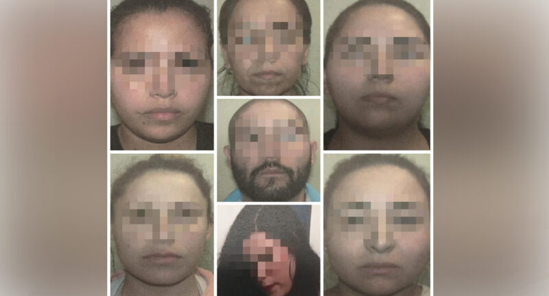 La carpeta de investigación establece que los siete imputados responden a los nombres y alías de Raúl “N” y/o Roberto “N” y/o José Roberto “N”; Mónica “N” y/o Iris Viviana “N”; Sandra “N” y/o Alexandra “N”; Andrea «N» y/o Edumaris “N”; Abigail “N” y/o Rosa Fernanda “N”; Ana Sofía “N” y/o Metzli Amairani “N” y, por último, Vanesa “N” y/o Heidi Vanesa “N”.
