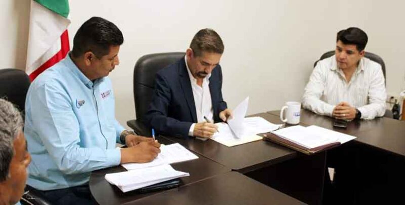 Con el fin de actualizar el contrato colectivo con el Sindicato del Organismo Operador de Agua Potable, Alcantarillado y Saneamiento de Huatabampo, el Gobierno Municipal que preside el L.C. Juan Jesús Flores Mendoza realizó la firma del mismo en una reunión llevada a cabo en la Sala de Juntas de Palacio Municipal.