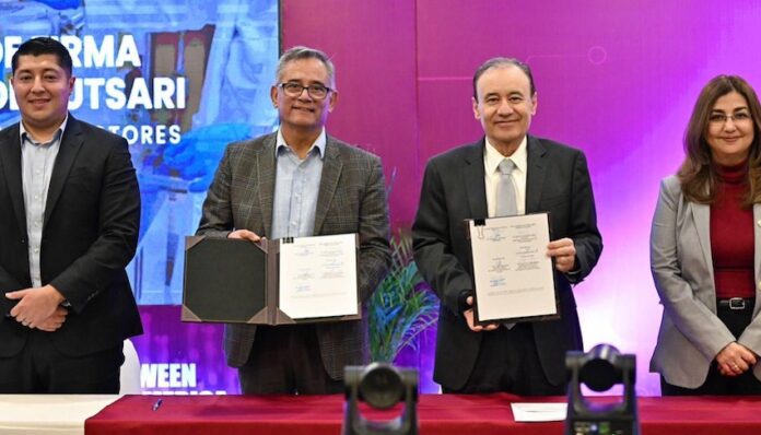 Hermosillo, Sonora.- Con acciones enfocadas en potenciar el desarrollo económico, a través del impulso de la tecnología, la atracción de inversiones y la consolidación de un Sonora con más oportunidades para las y los sonorenses, el gobernador Alfonso Durazo Montaño encabezó tres acuerdos para llevar a la entidad hacia un modelo de sustentabilidad moderno alineado al Plan Sonora de Energías Sostenibles.