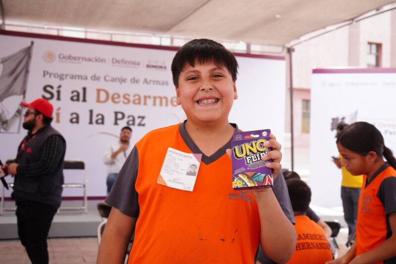 Hermosillo, Sonora; 29 de mayo de 2025.- Niñas, niños y personal docente de la escuela Lamberto Hernández calificaron como positivo el canje de juguetes bélicos por didácticos, al destacar que con ello se fomentará la cultura de la paz desde pequeños, beneficiando a las futuras generaciones.