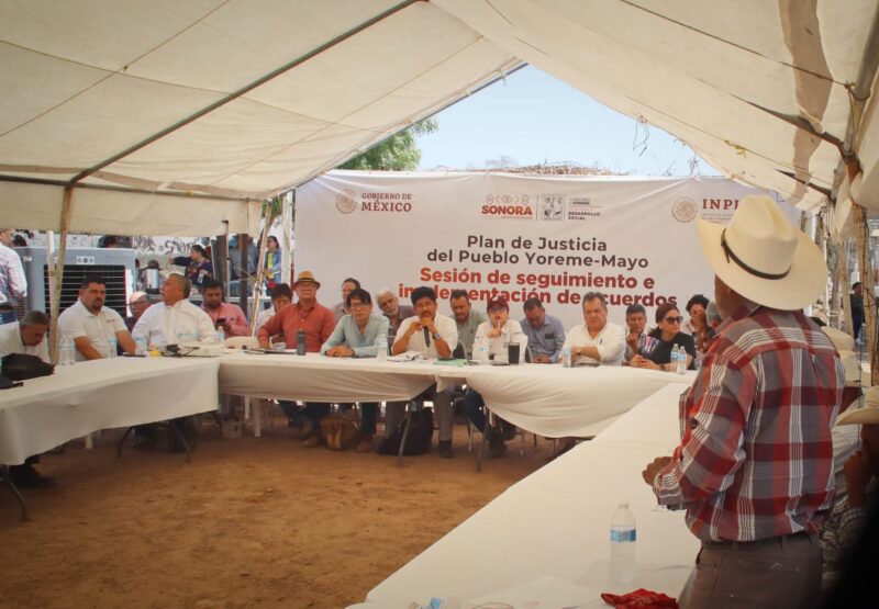Etchojoa, Sonora; 11 de julio de 2023.- En el marco del Plan de Justicia Yoreme-Mayo, el Gobierno de Sonora, a través de la Secretaría de Desarrollo Social (Sedesson) y en coordinación con el Instituto Nacional de los Pueblos Indígenas (INPI), dio seguimiento a las mesas de trabajo del Plan de Justicia Yoreme – Mayo en Etchojoa.