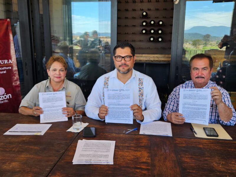 El subsecretario de Ganadería de la Secretaría de Agricultura, Ganadería, Recursos Hidráulicos, Pesca y Acuacultura (Sagarhpa), Jorge Luis Fimbres Castillo, signó el convenio con Juan Meléndrez Espinoza, titular de la Secretaría de Agricultura y Desarrollo Rural (SaderBC).
