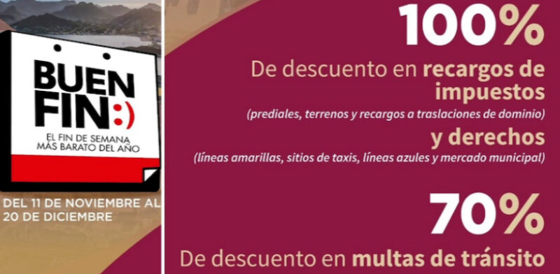 Guaymas, Sonora.- Para fortalecer e incentivar a la ciudadanía a realizar el pago de prediales y con ello, las familias cuenten con mejor infraestructura y servicios básicos, el Ayuntamiento de Guaymas promueve del 11 de noviembre al 20 de diciembre el “Buen Fin”.