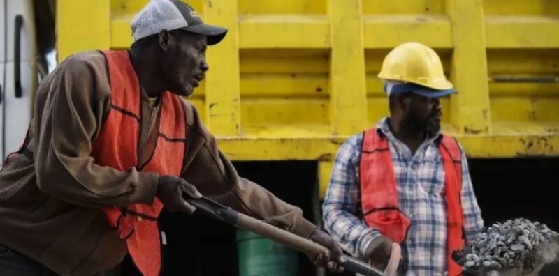 En una calle de la capital, cinco haitianos taladran el pavimento para instalar tuberías cerca de un cine abandonado. Jony, el único que habla español, es el enlace entre los patrones y el resto de trabajadores, quienes hablan criollo haitiano y sonríen a cualquiera que los mire.