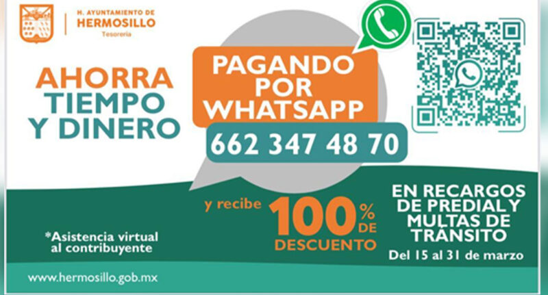 A través del número de WhatsApp 6623-474870, ciudadanas y ciudadanos pueden pagar desde su teléfono celular cualquier contribución municipal, haciendo clic a la liga de pago que, según prefieran, llegará directamente a esa mensajería o al correo electrónico que registren.