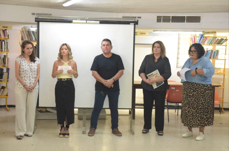 La acompañaron encabezando la ceremonia la escritora Sylvia Manríquez Ochoa de Escritores de Sonora; Czarina Morales Oloño, subdirectora de Patrimonio y Bibliotecas del IMCA y Magda Estrada Ávila, integrante del Taller de Fomento a la Lectura.