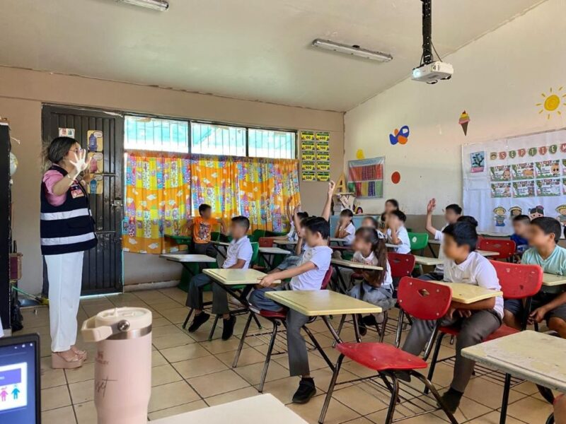 En Hermosillo, en un trabajo interactivo con alumnos de la escuela primaria “Venustiano Carranza” ubicada en la colonia Arcoíris, la SSP orientó sobre cómo identificar situaciones de riesgo.