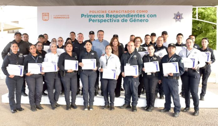 Hermosillo, Sonora.- El presidente municipal Antonio Astiazarán Gutiérrez confirmó el compromiso de su administración de continuar capacitando a las y los policías municipales y que la totalidad cuenten con las herramientas para atender de forma profesional, empática y solidaria a víctimas de violencia familiar.