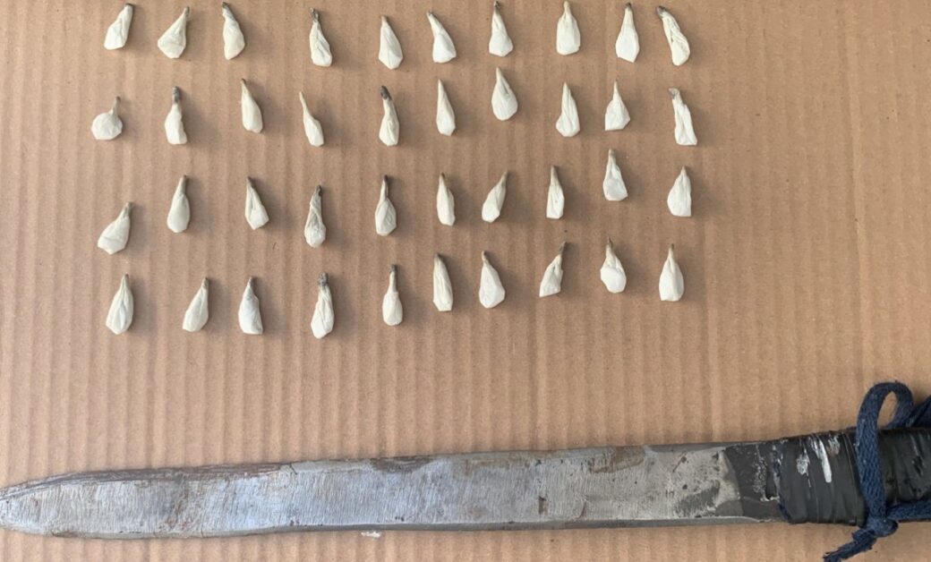 Durante la inspección, el sujeto fue sorprendido con un arma blanca fajada entre su ropa y 40 envoltorios que contenían sustancia granulada con características físicas al narcótico, motivo por el cual los agentes estatales informaron sobre los derechos de las personas detenidas para quedar a disposición del Ministerio Público correspondiente.
