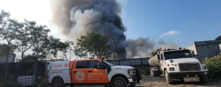 Protección Civil de Nuevo León, reportó que al llegar al sitio, rescatistas de esa corporación y Bomberos se encontraron con un incendio en el interior de dos bodegas, el cual alcanzó el techo de una de ellas a una altura de más de 6 metros.