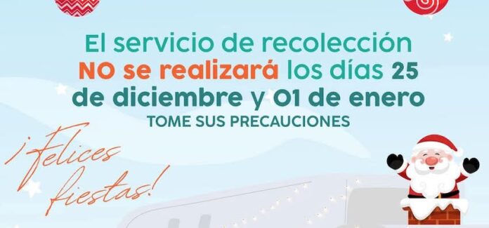 Hermosillo, Sonora.- Como cada año, los días jueves 25 de diciembre y 1 de enero de 2026 se suspenderá el servicio de recolección de basura en los domicilios, informó Sergio Pavlovich Escalante, director de Servicios Públicos Municipales.