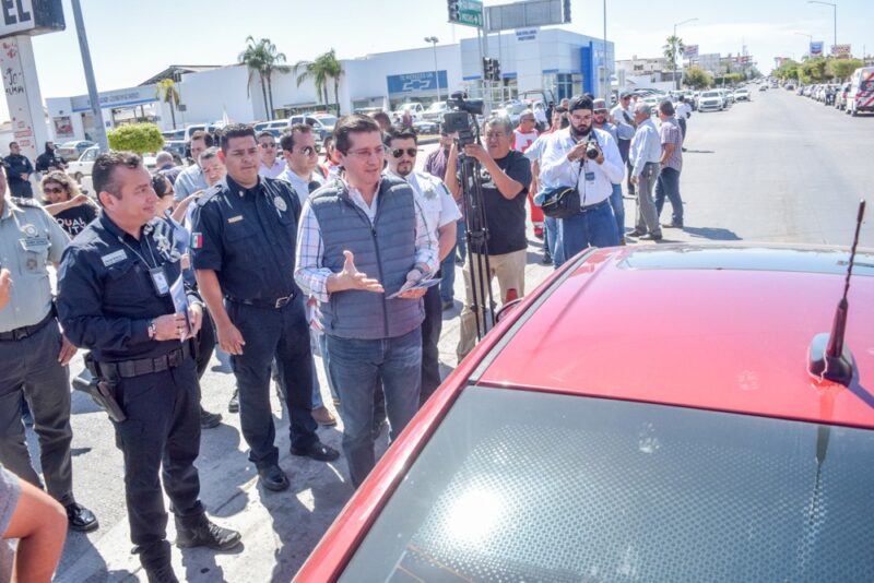 La comitiva oficial de autoridades inició en el crucero de Pesqueira y Centenario el reparto de trípticos entre automovilistas locales y en tránsito con destinos al norte y sur del estado y país.