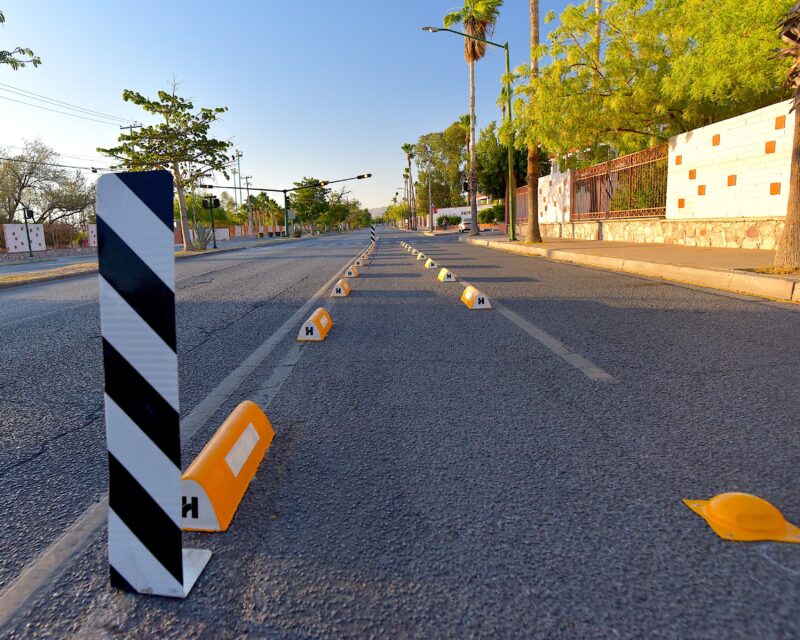– Instalan moldes de concreto para protección de ciclistas en la calle Reforma entre los bulevares Luis Donaldo Colosio y Juan Navarrete