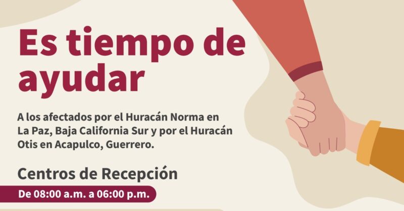 Guaymas, Sonora, 26 de octubre de 2023.- En apoyo y solidaridad con las familias de los estados de La Paz Baja, California Sur y Acapulco, Guerrero, que fueron afectados por los huracanes “Norma” y “Otis”, respectivamente, el Ayuntamiento de Guaymas instalará centros de acopio para recibir alimentos no perecederos, insumos para limpieza, artículos para aseo personal así como artículos y alimentos para bebés.