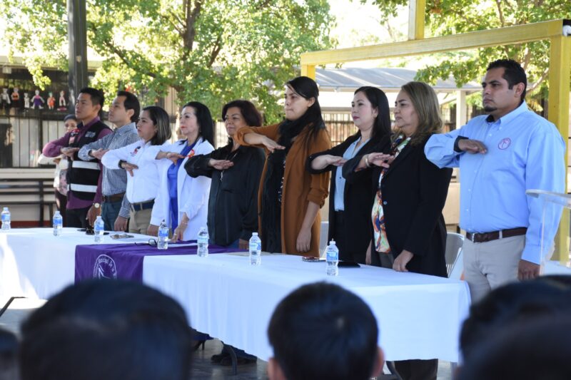 A nombre del comisario de Seguridad Pública, Javier Alatorre Correa, asistió la coordinadora de Prevención del Delito, Guadalupe Bibiana Herrera Borbón, por los Servicios Regionales de la SEC, Manuel Castro Sánchez, la supervisora de Zona Escolar, Berenice Muñoz, y del ITSON, Gloria Cano.