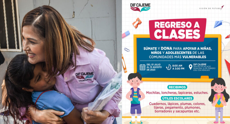 Con el propósito de beneficiar a niñas, niños y adolescentes de escasos recursos para que puedan continuar con sus estudios y disfrutar su vida escolar, DIF Cajeme inicia con la Campaña “Regreso a Clases” la cual se mantendrá activa desde el 01 de julio hasta el 15 de agosto y que invita a empresas, instituciones, asociaciones y sociedad a sumarse a la donación de útiles escolares.