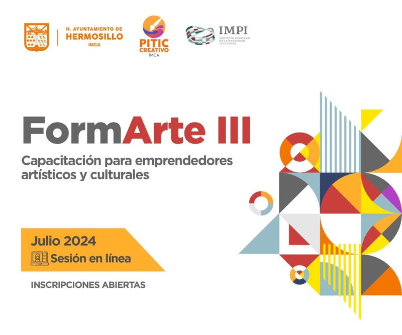 Hermosillo, Sonora, 14 de julio, 2024. La tercera edición del programa FormArte continuará en modalidad virtual este 16 de julio en horario de 9:00 a 13:00 horas donde se abordará el tema del registro de marca y los pasos para realizarlo, programa impulsado por el Ayuntamiento de Hermosillo, a través del Instituto Municipal de Cultura y Arte, IMCA.