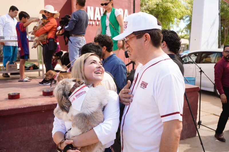 En la plaza Santa Fe Spring se realizó jornada de apoyo a mascotas, con vacunas, desparasitación, adiestramiento, entre otras acciones, donde el aspirante a la alcaldía, acompañado de su esposa Luz Argel Gaxiola de Elías, invitó a la ciudadanía a sumarse a este tipo de ejercicios que benefician a la comunidad.