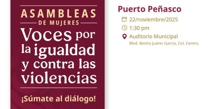 El Gobierno de Puerto Peñasco, a través del Instituto Municipal de la Mujer y en coordinación con la Secretaria de la Mujer, invita a todas las mujeres del municipio a formar parte de las Asambleas de Mujeres: Voces por la Igualdad y Contra las Violencias.
