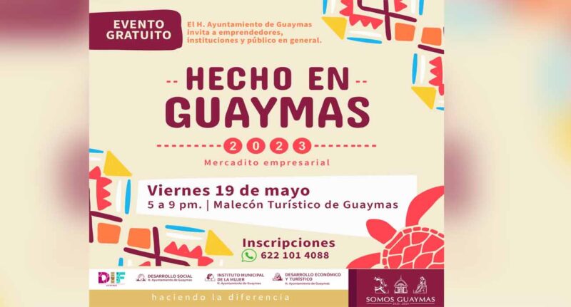 Para promover las propuestas de los emprendedores locales, instituciones y público en general, invitan a registrarse para participar en «Hecho en Guaymas 2023 Mercadito Empresarial», anunció Eliana Montoya Castillo, directora de Desarrollo Económico y Turístico.