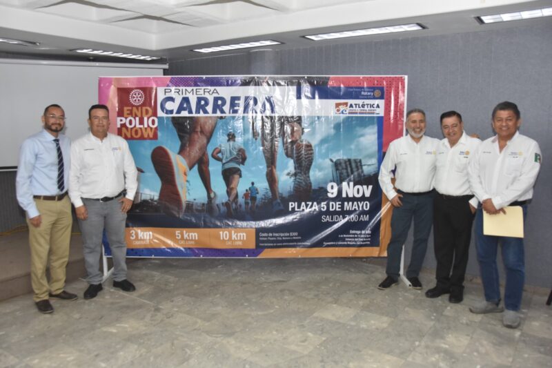 Navojoa, Sonora, 30 de octubre 2025.- El 9 de noviembre próximo tendrá lugar la Primera Carrera “End Polio Now”, que abarcará rutas de caminata y corrida en 3, 5 y 10 kilómetros, con una bolsa global de premios de 86 mil pesos, evento impulsado por el Club Rotario de Navojoa, bajo el respaldo del gobierno del alcalde Jorge Alberto Elías Retes.