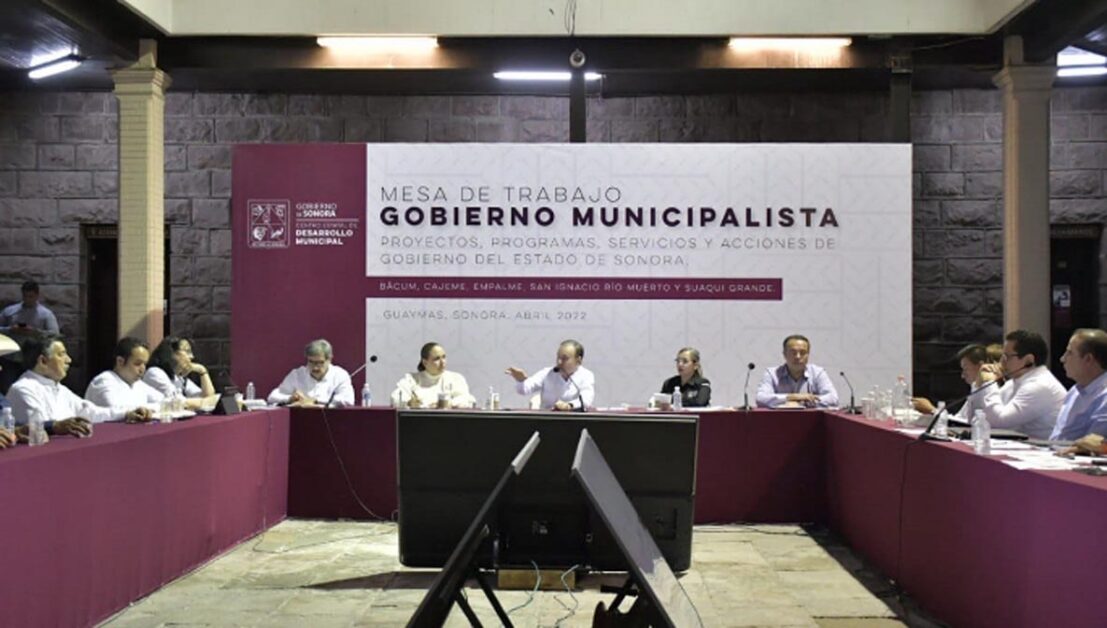 Al encabezar la Mesa de Trabajo Municipalista: Proyectos, programas, servicios y acciones de gobierno del estado de Sonora, el mandatario estatal se reunió con alcaldes y alcaldesas de Bácum, Cajeme, Guaymas, Empalme, San Ignacio Río Muerto, Suaqui Grande, Navojoa, Álamos, Benito Juárez, Etchojoa, y Huatabampo y, en conjunto con integrantes del gabinete estatal, tomó nota de cada una de las necesidades de las comunidades en la entidad.