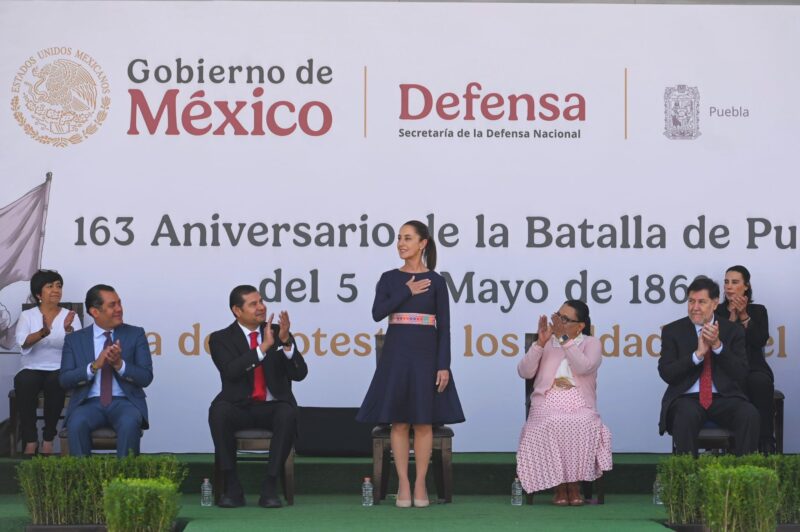 PUEBLA, Pue.- En el marco del Aniversario de la Batalla de Puebla, la Comandanta de las Fuerzas Armadas, Claudia Sheinbaum Pardo dijo que esta fecha debe recordarles a los mexicanos que el presente y el futuro de México es el de ser una nación libre, independiente y soberana, y que siempre estará dispuesta a dar su vida por el amor a nuestra historia y el legado de los patriotas.