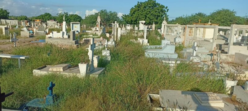 Huatabampo, Son.- Debido a las lluvias que cayeron en el municipio en días pasados, los trabajos de limpieza en los campos santos se vieron atrasados y la hierba creció mucho.