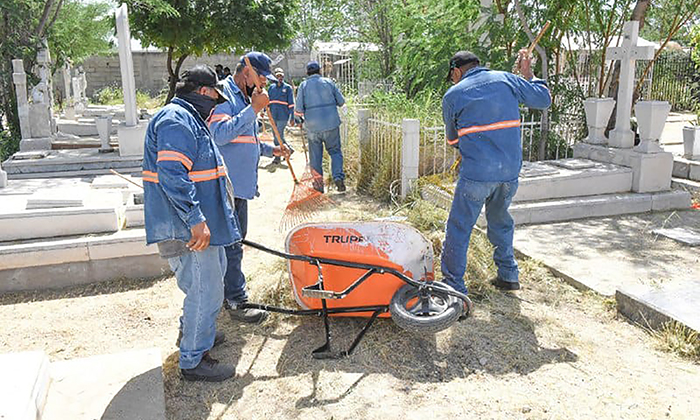 Como parte de los trabajos previos, la Dirección de Servicios Públicos ha retirado aproximadamente 300 toneladas de desechos en panteones de la zona urbana, a fin de mantenerlos en óptimas condiciones para quienes deseen visitarlos a partir de las 7:00 a 20:00 horas.