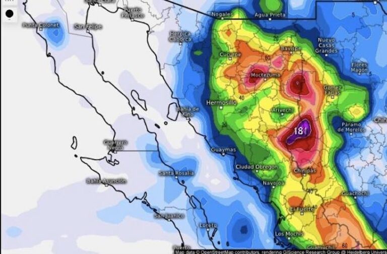 Respecto a las lluvias, el pronóstico semanal prevé precipitaciones significativas (de 50 a 75 mm), como parte del patrón climático tipo monzón que afecta a la región serrana y al río Sonora, con una posible trayectoria hacia el centro del estado. No obstante, la mayor concentración de eventos de precipitación se presentará en la región serrana, en municipios limítrofes con Chihuahua.
