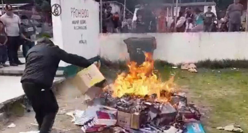 Supuestos padres de familia de la comunidad San Antonio del Monte, en la zona norte del municipio de San Cristóbal de las Casas, Chiapas, quemaron todos los libros de textos que la Secretaría de Educación Pública (SEP) les entregó a una semana del inicio del ciclo 2023 a 2024.