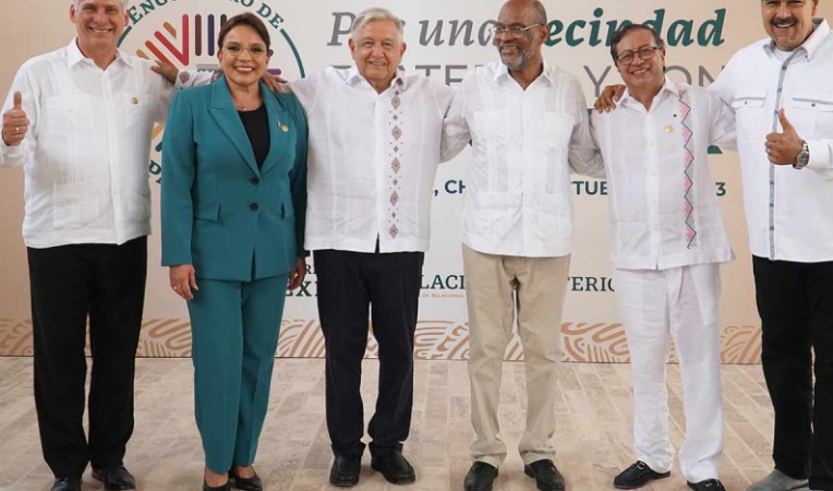A través de las redes sociales, el mandatario compartió una imagen al lado de Miguel Díaz-Canel, presidente de Cuba; Xiomara Castro, presidenta de Honduras; Ariel Henry, primer ministro de Haití; Gustavo Petro, presidente de Colombia y Nicolás Maduro, presidente de Venezuela.